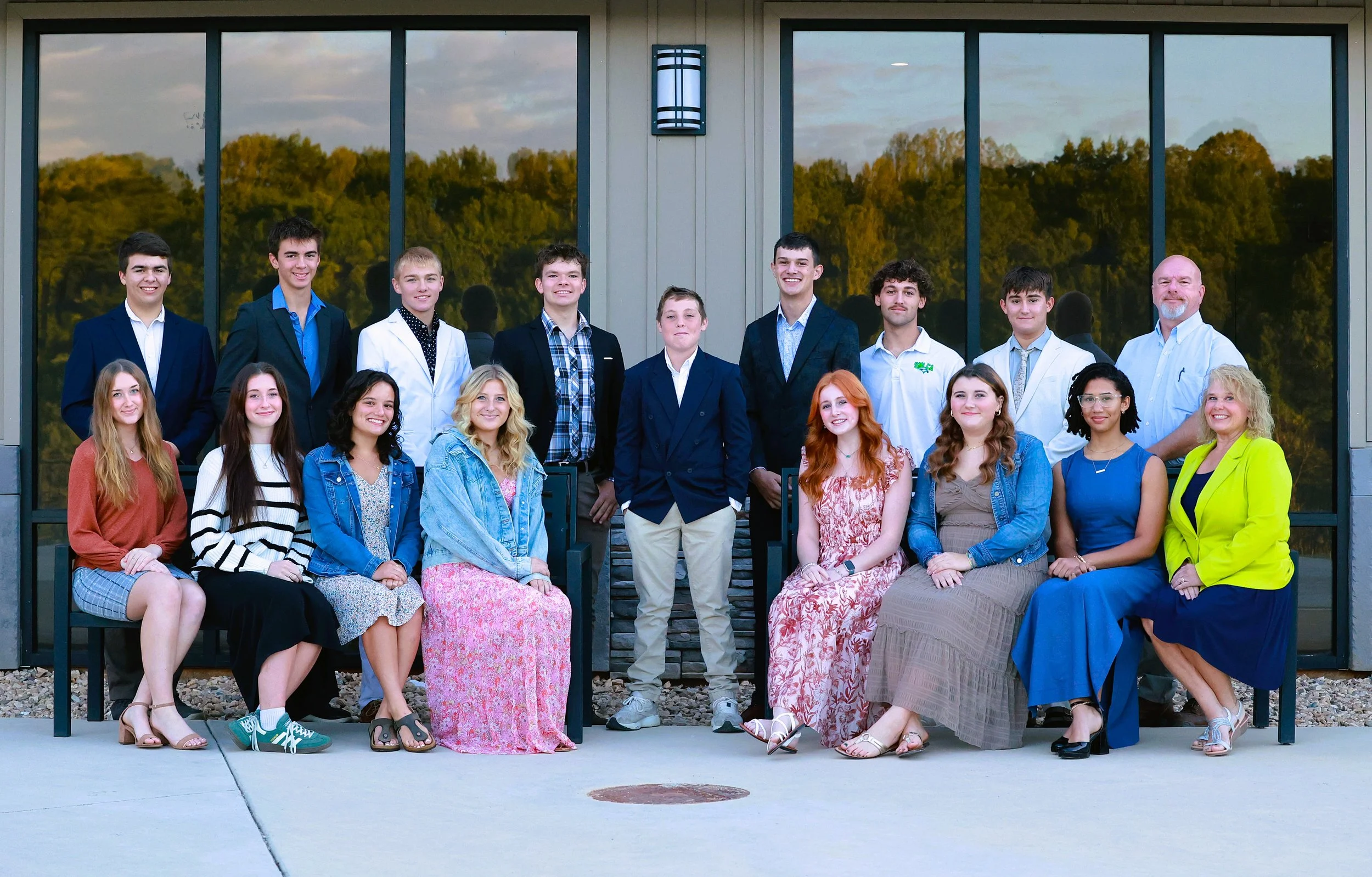 Back row, left to right: Ben Agee, James Agee, Isaiah Booth, Cooper Dooley, Ellis Hahn, Noah Obaugh, Gabe Robb, Dustin Sisk, Keith St.Clair. Front row, left to right: Callie Hammock, Lily Terrel, Savannah Linkenhoker, Macie Rainmaker, Adeline Cassidy, Mary Ann St.Clair, Mary Anthony, Carole St.Clair. Not pictured: Piper-Kate Mclamb, Andrew Polk